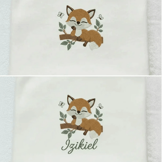 Couverture Bébé Flanelle Blanche - Petit Renard Dormant & Prénom Brodé Personnalisé